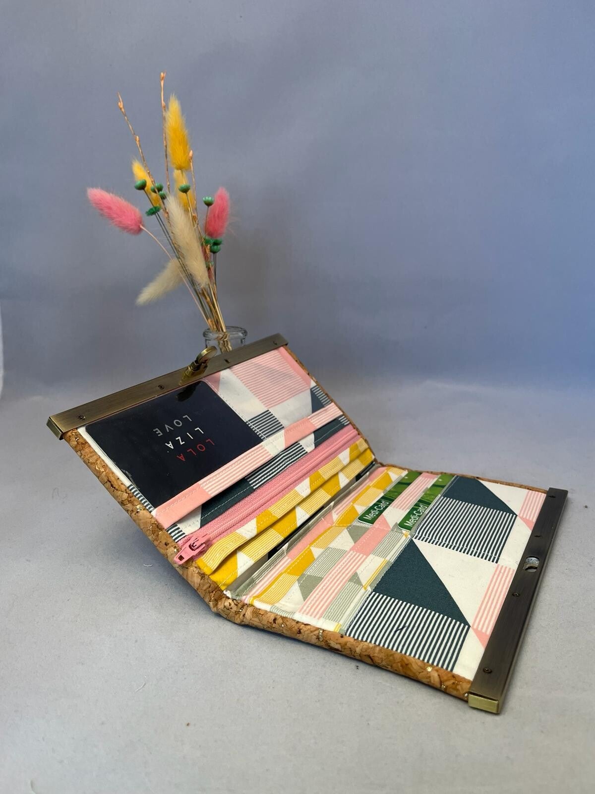 - gesloten is de portemonnee 19cm breed en 11,5cm hoog