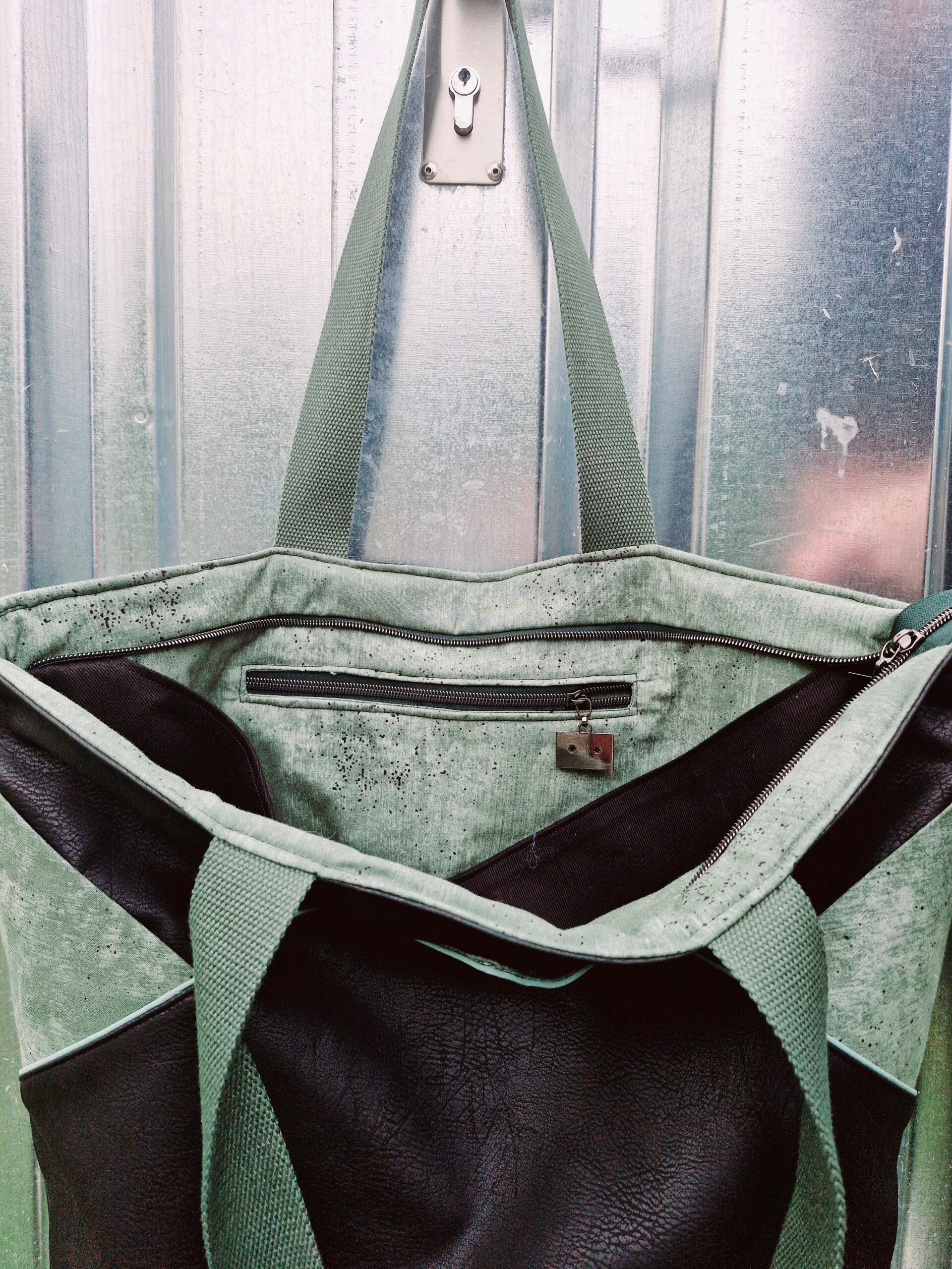 - zakje vooraan, afgesloten met een drukknop, langs de buitenzijde